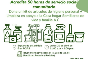 La comunidad estudiantil podrá acreditar horas de servicio social mediante la donación de artículos de higiene y limpieza en apoyo a una casa hogar.