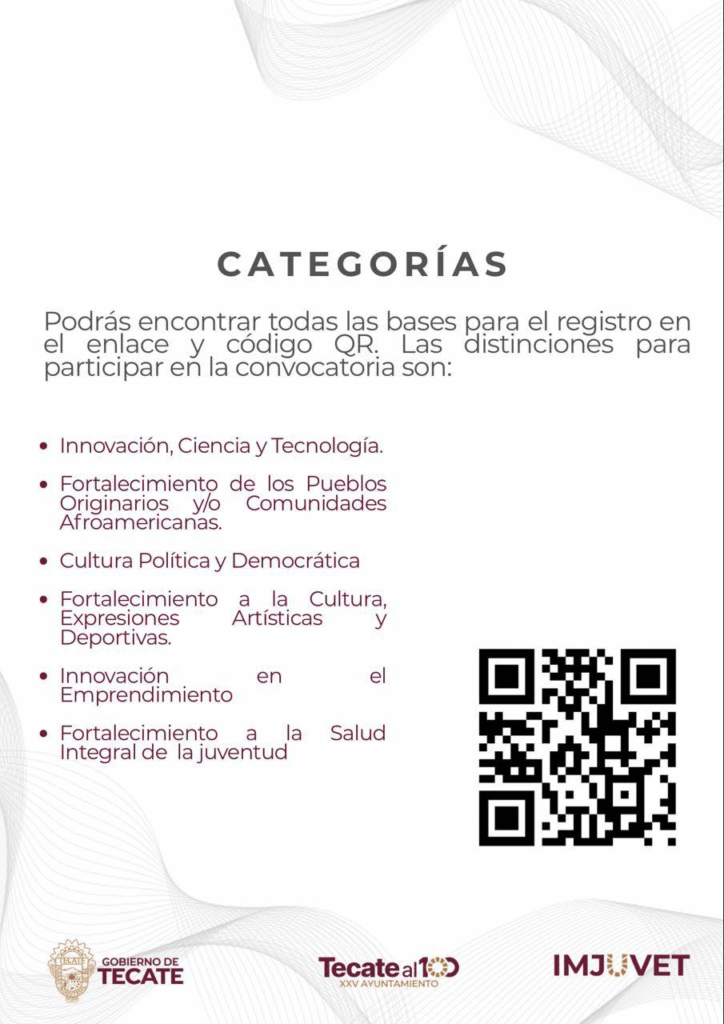 El Instituto Municipal de la Juventud (IMJuve) de Tecate ha abierto la convocatoria para el Premio Municipal a la Juventud 2025, una iniciativa que busca destacar a jóvenes que, a través de su esfuerzo y creatividad, están generando un impacto positivo en su comunidad.