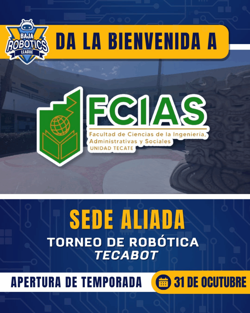 ¡Damos la más cordial bienvenida a la Facultad de Ciencias de la Ingeniería, Administrativas y Sociales de la UABC Tecate por unirse a la gran familia de la Baja Robotics League!